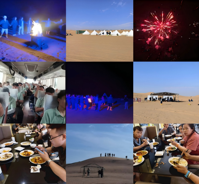本次活動重點向一線職工傾斜。公司工會提前籌劃、周密部署,在交通、住宿、餐飲及活動安排等方面精細化管理,全力保障職工安全無憂、身心舒暢。依托得天獨厚的自然資源,本次活動融合地方特色美食品鑒、沙漠徒步探索、篝火聯(lián)歡晚會、溫泉療愈體驗等多種形式,內(nèi)容豐富多彩。為期兩天的休養(yǎng)不僅有效緩解了職工的工作壓力,更進一步增強了團隊溝通與凝聚力。