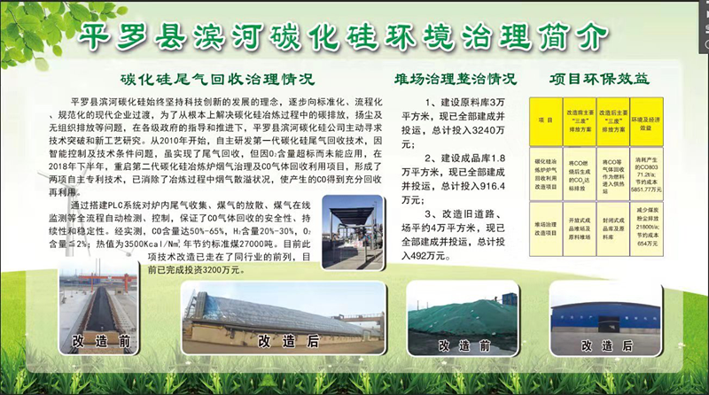 2019年3月11日,由自治區(qū)政協(xié)副主席李彥凱帶隊,對平羅縣重點環(huán)保工程整改進行了調(diào)研和督查。督察組來到了我公司寧夏濱河碳化硅制品有限公司,先在我公司展廳了解了我公司的發(fā)展歷程和觀看了環(huán)保整治前后的ppt,然后到現(xiàn)場對整治完的工程進行了觀摩。