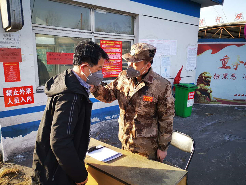 “請靠邊停車,我們需要給車輛消毒,請您下車做詳細登記并測量體溫?!?1點半不是上下班時間,雖然偶有人車進出,但郗余亮時刻堅守在刺骨的寒風中,檢查過往人員和車輛,嚴格執(zhí)行公司對新冠肺炎疫情防控的各項要求。“疫情當前,我作為公司員工,又是民兵,有責任也有義務沖鋒在前保護全廠員工和企業(yè)的安全,為了早日戰(zhàn)勝疫情,再苦再累我都能克服。”郗余亮說。